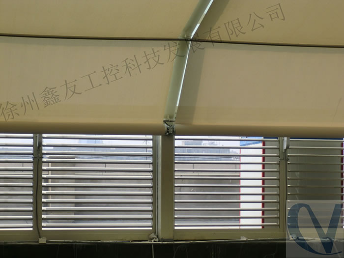 FTS天棚簾特別適用于普通電動卷簾無法安裝的彎曲、傾斜的場合,整個系統(tǒng)由驅(qū)動系統(tǒng)、面料和控制系統(tǒng)三部分組成,驅(qū)動系統(tǒng)采用2個FTS專用管狀電機,分別安裝在兩條卷管中,面料一端固定在其中一條卷管上,固定面料另一端的鋼絲繩卷曲在另一條卷管的卷繩器上。這兩臺電機通過一個專用的控制器協(xié)調(diào)工作,其中一臺電機提供面料運行的動力,另一臺電機的剎車同時工作,提供一定的阻力拖住面料,避免面料下墜,天棚完全打開后,面料會卷在其中一條卷管上,運行中或停止時面料均有張力,可制作大面積的平面或弧形面的天棚簾系統(tǒng)。