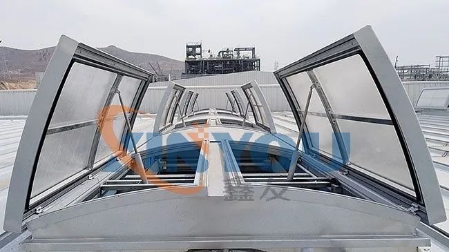 鑫友承接萬(wàn)華化學(xué)集團(tuán)物資有限公司煙臺(tái)綜合倉(cāng)庫(kù)電動(dòng)排煙天窗工程,采用圓拱型對(duì)開(kāi)式采光排煙天窗,該工程4月8日全部安裝完畢,已經(jīng)達(dá)到消防工程驗(yàn)收標(biāo)準(zhǔn)。