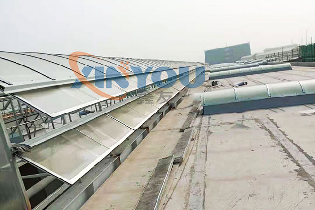 鑫友工業(yè)類電動消防排煙天窗主要適用于廠房等工業(yè)類大型建筑的屋頂采光、通風(fēng)、排煙,設(shè)計依據(jù)建筑標準設(shè)計圖集09J621-2。